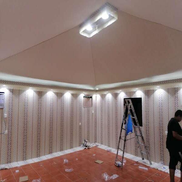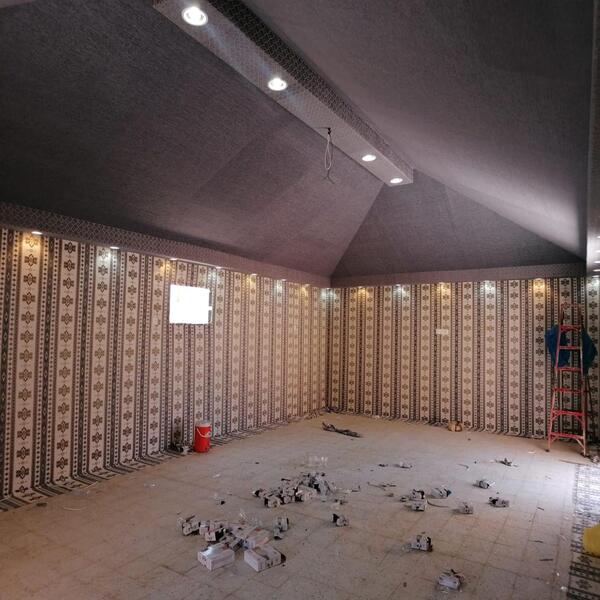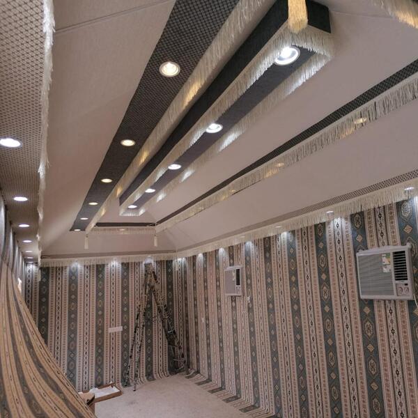 • نقوم بتنفيذ بيوت شعر مجهزة على أعلى مستوى من الأغراض التي يتم استخدامها مثل (الستائر، والكنب، ووحدات الإضاءة، والمساند) وغيرها.