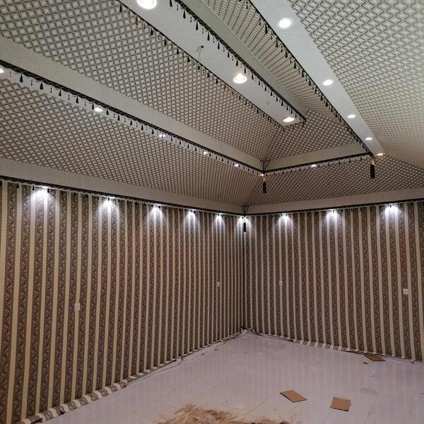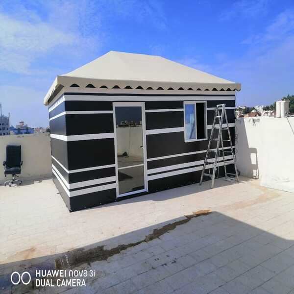 • من أهم ما يمكننا تنفيذه وتقديمه للعمل هو تصميم بيوت شعر خيام ملكية وعادية مصنوعة من الحديد العازل للصوت.