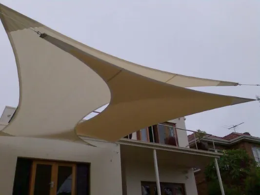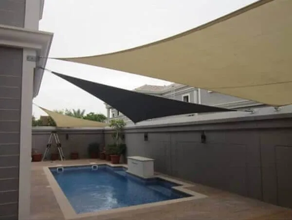 - مظلات مثلثات الشد الانشائي ويعد هذا النوع من أفضل أنواع المظلات ولتنفيذها يتم عمل عمدان ثم يتم تغطية المثلثات بواسطة قماش البي في سي، ويتميز هذا النوع بمظهره الجميل والأنيق وننصح باستخدام هذا النوع في الحدائق العامة والمنزلية والمنتزهات والأماكن المفتوحة.