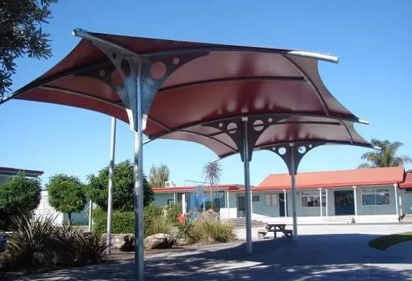 - مظلات شراعية للحدائق وتكون هذه المظلات في شكل عنكبوت مشدود ويتم شده بواسطة ٤ مواسير على شكل إكس في المنتصف ويمتد إلى الأربع قواعد دون الحاجة إلى عمدان بمنتصف المظلة، أما عن تغطية المظلات فيتم تغطيتها بواسطة قماش بي في سي ألماني ذات جودة عالية بوزن ١٠٥٠ جرام.
